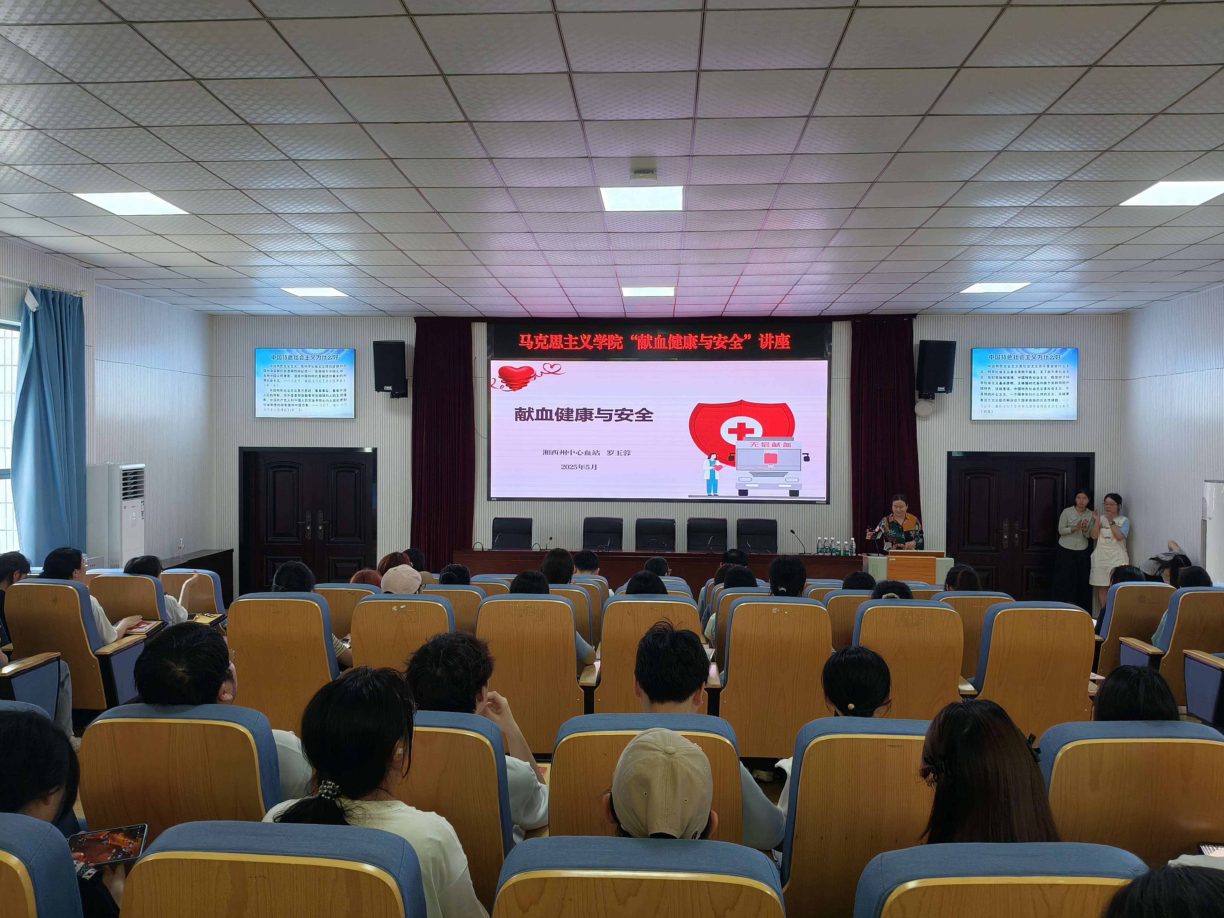 本网讯(通讯员 廖肖珠)为增强师生健康意识,普及科学健康知识,共同营造健康校园氛围,2025年5月20日下午,365英国上市公司在线于思政园1207教室举办“健康知识普及·我行动”主题宣讲活动。本次活动由学院团委书记王晋主持,特邀湘西州中心血站专家罗玉蓉、彭净担任主讲,学院全体本科生参与。