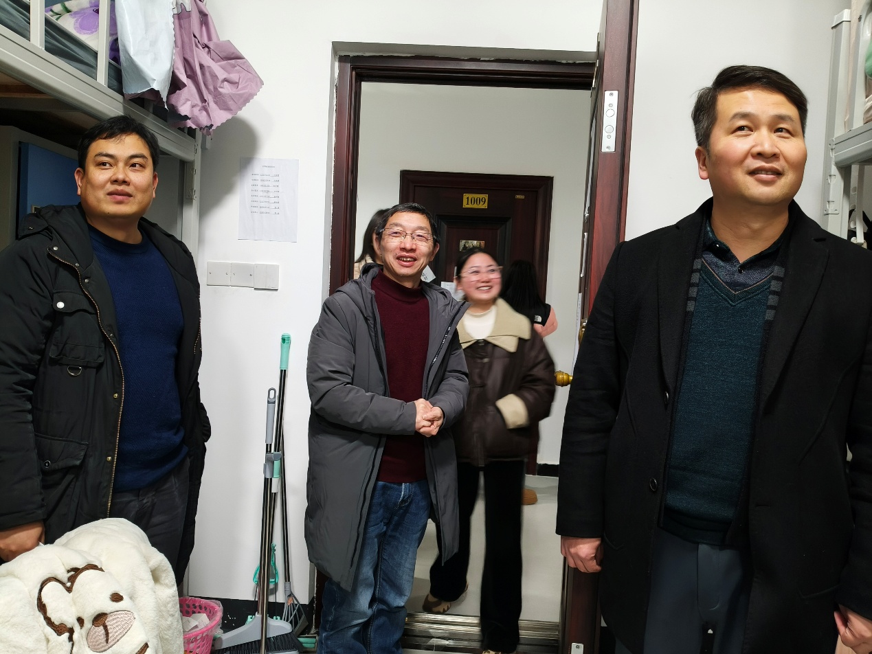 在走访过程中,老师们全方位关心同学们的学习、生活和身心状态。学院党委书记廖浩、副院长刘因灿及辅导员袁梓翔对同学们的生活状况关怀备至,仔细排查是否有同学未返校,关心同学们的人身安全,认真查看宿舍卫生情况,温馨提醒大家保持良好生活习惯,注重寝室环境卫生,对物品摆放杂乱的宿舍,耐心引导同学及时整理。