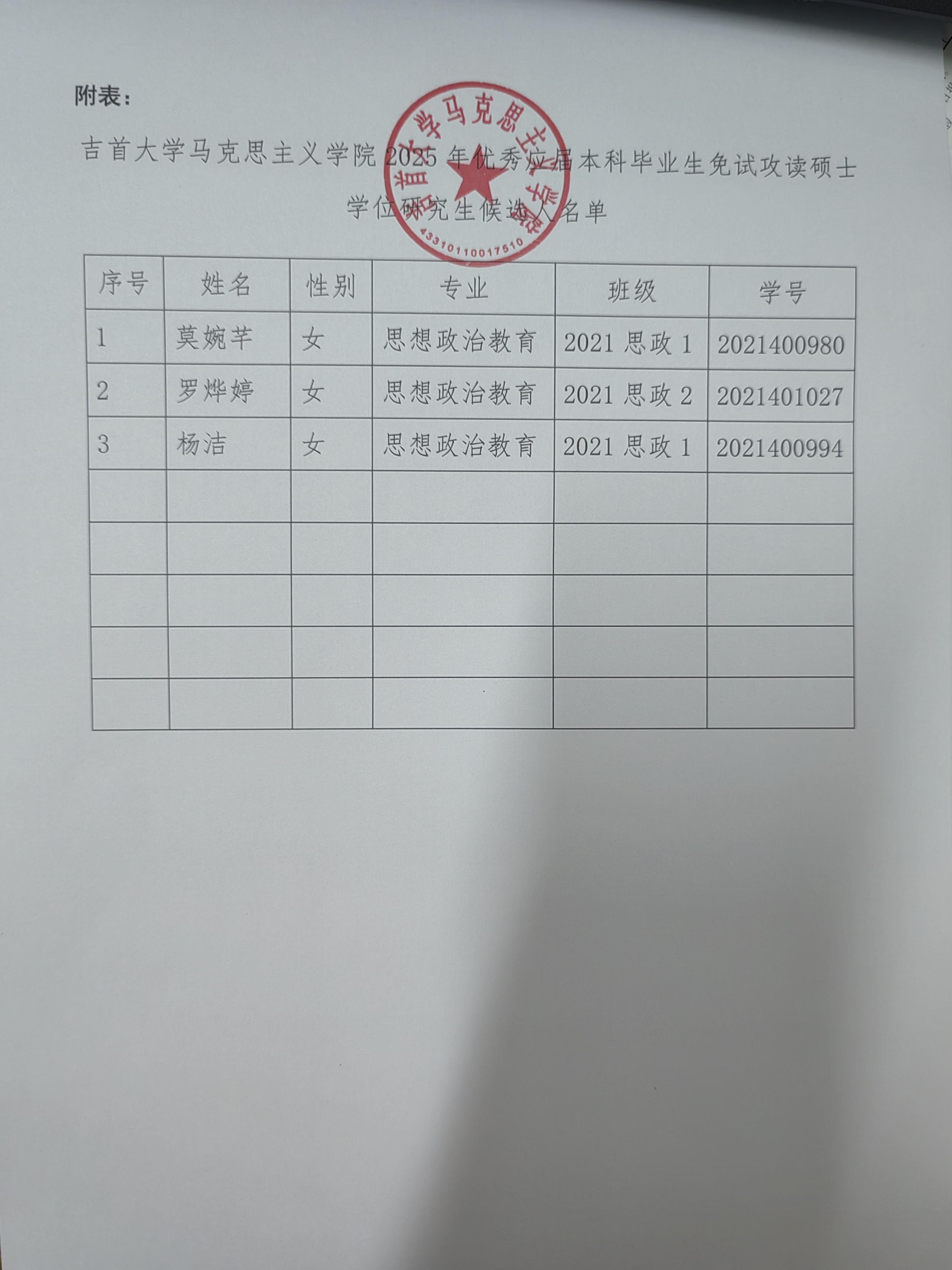 365英国上市公司在线关于2025年优秀应届本科毕业生免试攻读硕士学位研究生候选人推荐结果的公示