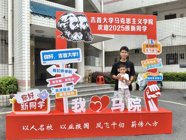 学院还精心设置了拍照打卡点,背景板上印着“我❤马院”的字样,搭配着富有学院特色的元素。许多新生在完成报到手续后,纷纷来到打卡点,与家人一起合影留念。大家摆出各种可爱的姿势,脸上洋溢着灿烂的笑容,用镜头记录下初入大学校园的美好瞬间,将这份喜悦与期待永久保存。