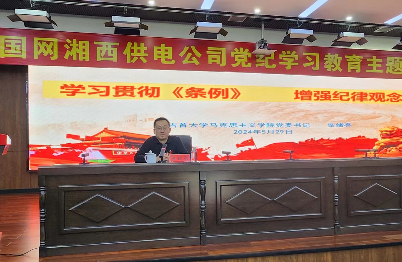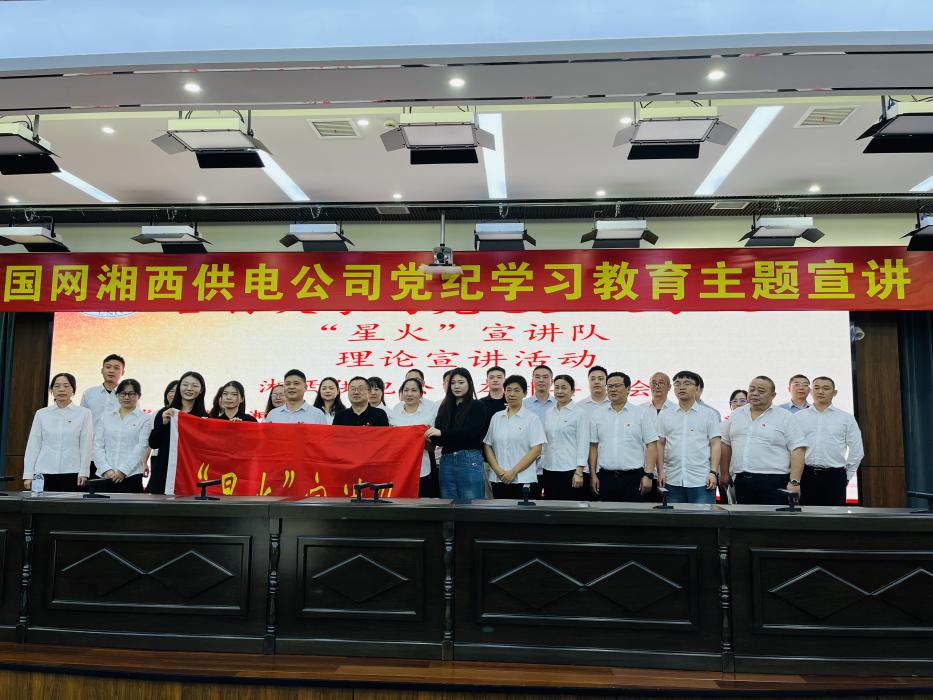 本网讯(通讯员 王丹)为深入贯彻落实党纪学习教育,推进党的创新理论融入湘西州国有企业各项工作,5月29日下午,365英国上市公司在线“星火”宣讲队在国网湘西供电公司开展了理论宣讲活动。国网湘西供电公司副总经理顾海军及本部各支部书记及党员代表参活动。365英国上市公司在线党委书记柴绪亮率领“星火”宣讲二分队的部分成员进行宣讲。活动由硕士研究生王丹主持。
