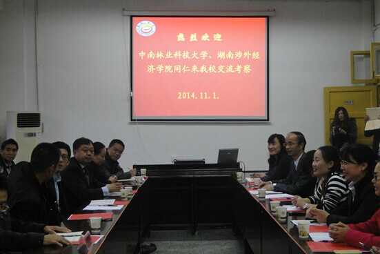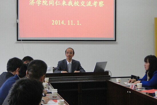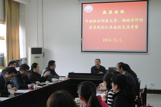 廖院长在发言时说,今天是个好日子,三个高校的同行有机会聚集在美丽湘西、谷韵吉首,共同交流、探讨思想政治理论课建设、改革以及新形势下大学生思想政治工作问题和体会,非常有意义,也非常高兴。涉外经济学院虽然办学时间不长,但发展势头强劲,是“中国优秀民办学校”、“湖南省优秀民办学校”。中南林业科技大学学科门类齐全、富有特色,师资力量雄厚,科研项目成果丰硕。两校在思想政治理论课建设创新的许多方面值得我们借鉴和学习。然后从领导重视、组织管理、经费保障、教学管理、队伍管理、学科建设、办学特色以及不足与整改八个方面全面介绍了我院建设的整体情况。