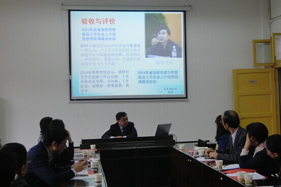 李故新与胡美灵主任在讲话中分别就本次考察的目的、想法、主题及本校思想政治理论课教学建设、改革情况进行了介绍,称赞我校在思想政治理论课教学和马克思主义理论学科建设方面取得的成绩。