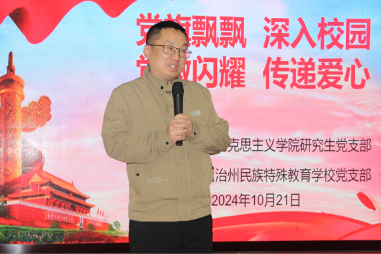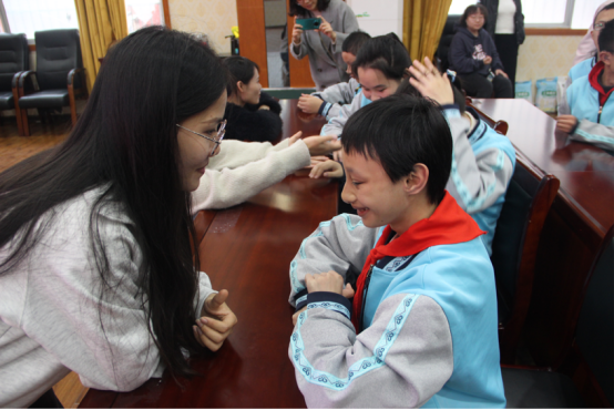 紧接着,湘西州民族特殊教育学校党支部委员、教学副校长刘华致欢迎辞。她表示,希望通过本次活动,能让特殊学生感受到吉大马院学子的关爱和关怀,让越来越多的人理解、尊重、关心、帮助特殊儿童。同时也希望两校党支部以此次主题活动为契机,拓宽党建共建新领域,发挥“党建+爱心帮扶”作用,交流互动、互促互进,建强党建“共同体”,画好共建“同心圆”。