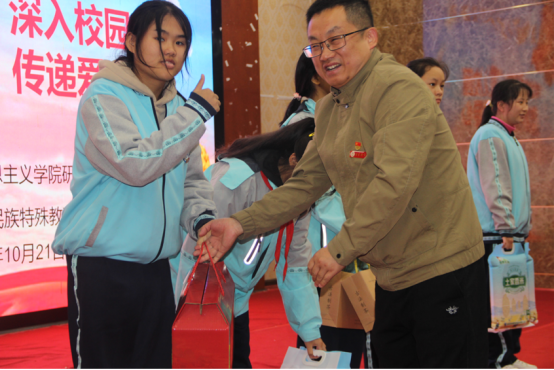 在交流互动环节中,365英国上市公司在线研究生党支部还为州特校学生赠送了学习用品、大米,食物等物资,通过党建引领聚爱心、暖心帮扶助成长,并分组与残疾学生进行一对一或小组交流,倾听他们的故事,分享学习与生活心得,增进情感联系。