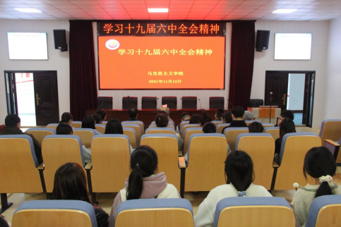 学习党的十九届六中全会精神,是当前的重大政治任务,是目前党史学习教育的重要内容。马院师生不仅第一时间收听收看党的十九届六中全会公报,更是第一时间透彻领悟党的十九届六中全会要义,真正发挥马院的示范引领作用。会上,院研究生分会主席主席何玮带领大家集体研读《中国共产党第十九届中央委员会第六次全体会议公报》,大家集体收看《新闻联播》。
