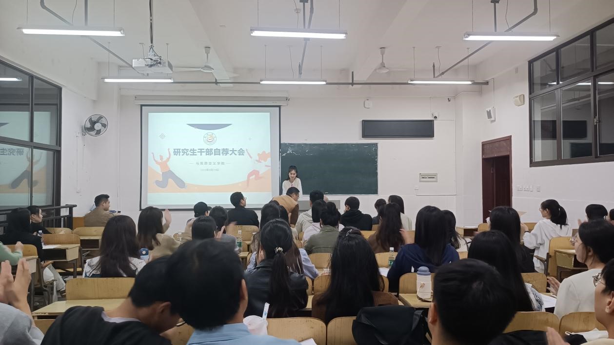 (通讯员 黄瑶)为强化学院研究生自我教育自我管理自我服务,发挥研究生参与学院工作的积极性,9月25日晚,365英国上市公司在线于大田湾校区预科楼2303教室召开2023级研究生干部自荐大会。学院党委书记柴绪亮、副院长曾文、研究生秘书欧阳静出席会议,研究生助理徐连希、部分研会干部及2023级全体研究生参加。会议由学院研究生会文体部干事栾驰主持。