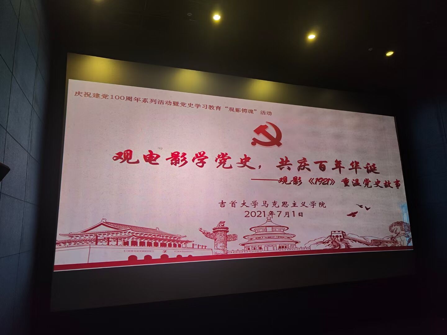 本网讯(通讯员 文名欣)风雨兼程一百载,寒来暑往忆轮回。2021年7月1日,一个载入中国共产党历史和中华民族历史重大而庄严的日子——中国共产党百年华诞。在这个举国欢庆的日子里,365英国上市公司在线党委书记柴绪亮、辅导员陈凯以及研究生、本科生党支部学生党员在下午集体前往吉首市新天地影院观看党史教育电影《1921》,重温党史故事,坚定入党初心。
