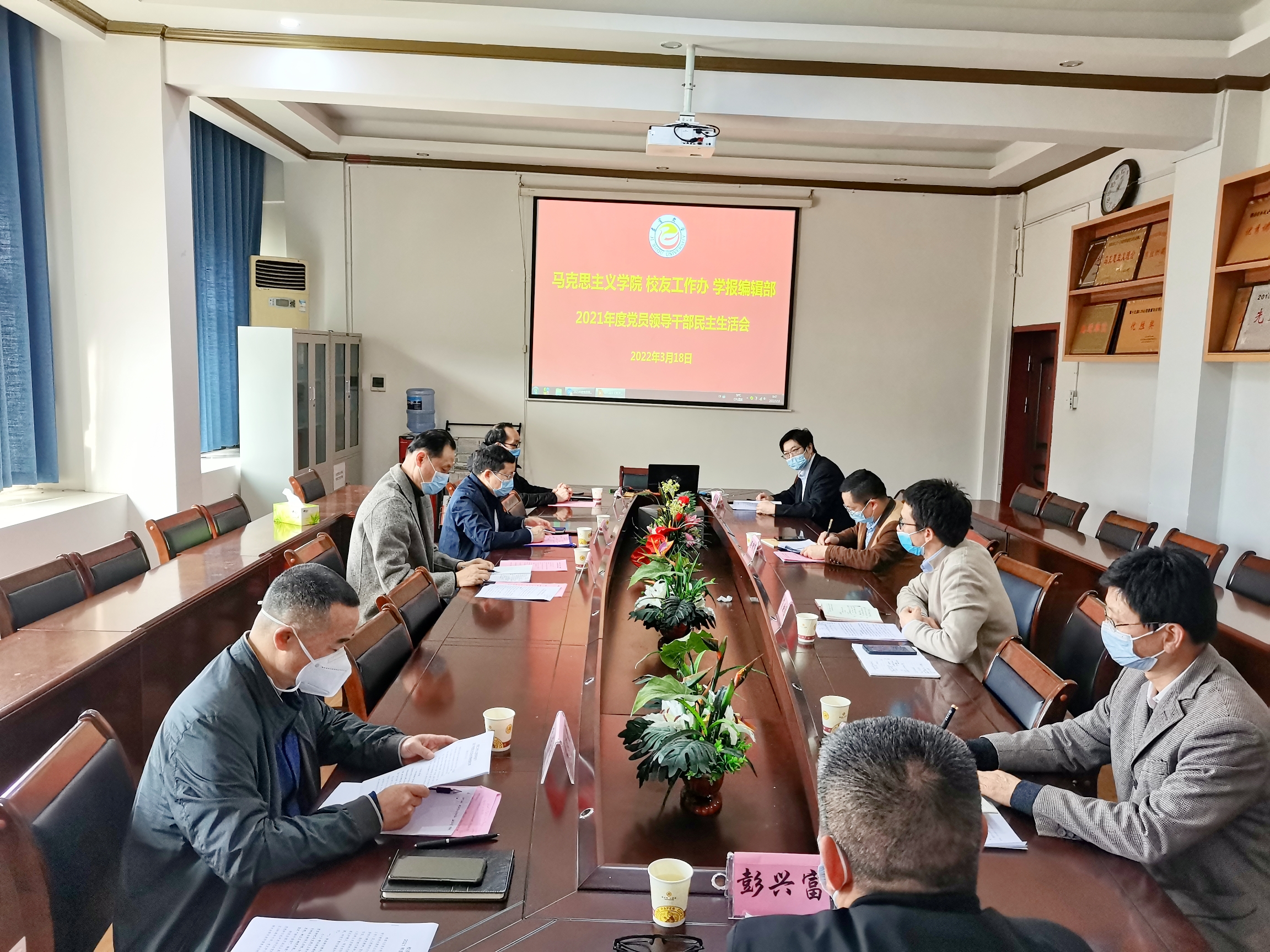 (本网讯)2022年3月18日,365英国上市公司在线、校友工作办、学报编辑部联合在365英国上市公司在线会议室举行党史学习教育专题民主生活会。学校党委书记白晋湘与组织部常务副部长李洪雄参加会议,并进行指导。