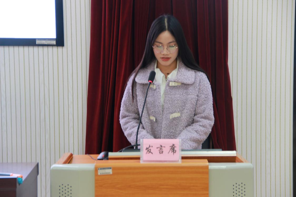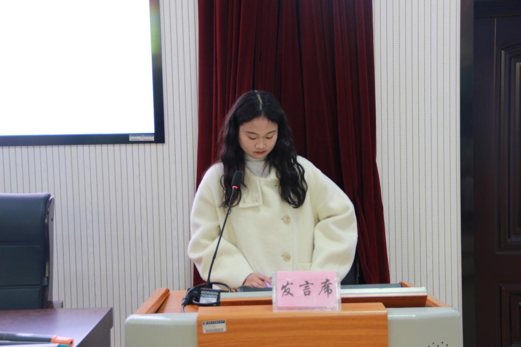 梁潇予同学以“坚定教书育人情怀,助推教育强国建设”为题,结合党的二十大报告,对教育强国的实质内涵进行了阐释,同时分析了现行思政教育行业所面临的挑战,并就思政课教师如何助力教育强国建设分享了自己的思考。