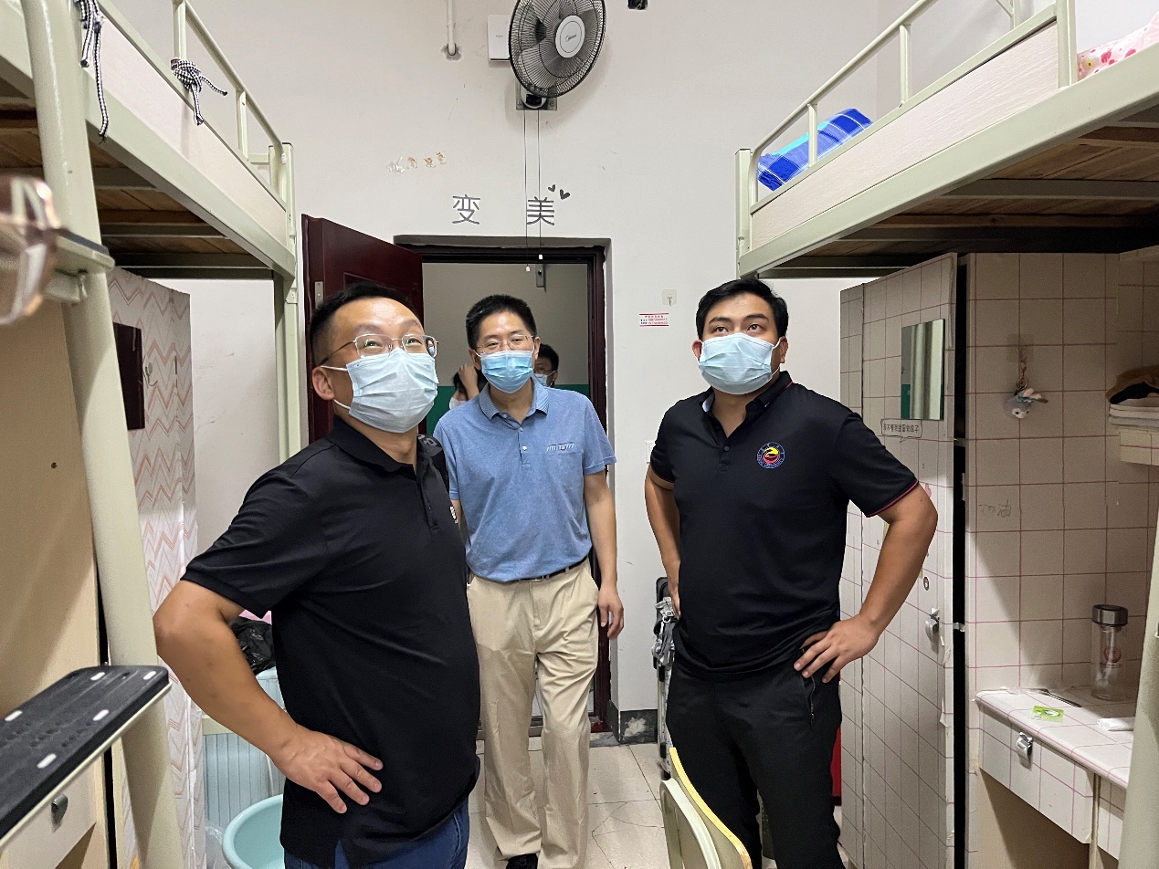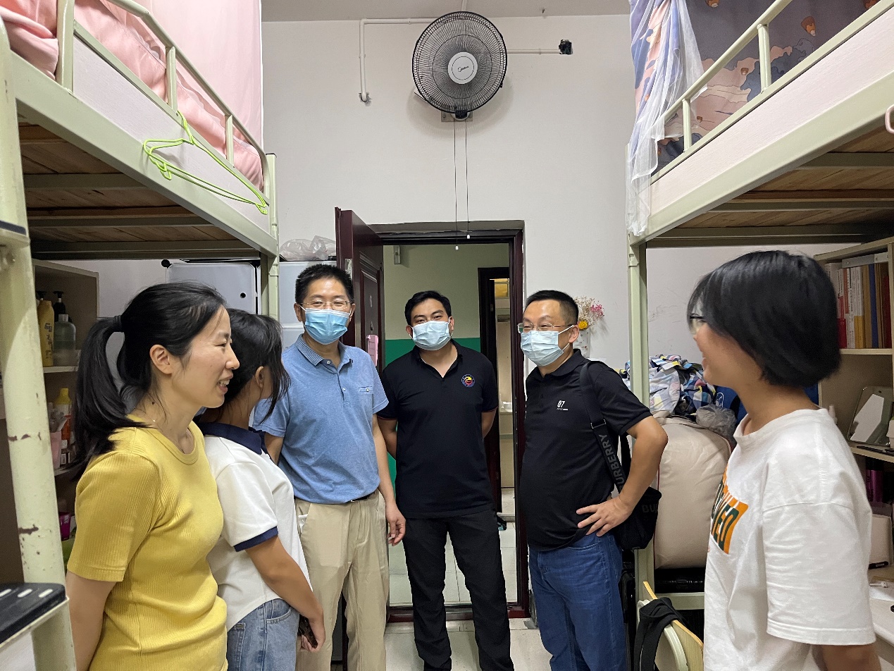 本网讯(通讯员 朱思瑾)为深入了解我院学生的宿舍生活和开学到校情况,9月4日晚上19:00,我院党委书记柴绪亮、新到任的党委副书记叶伏秋、辅导员袁梓翔以及19、20、21级各班班主任集体下寝室看望假期归来的学生。