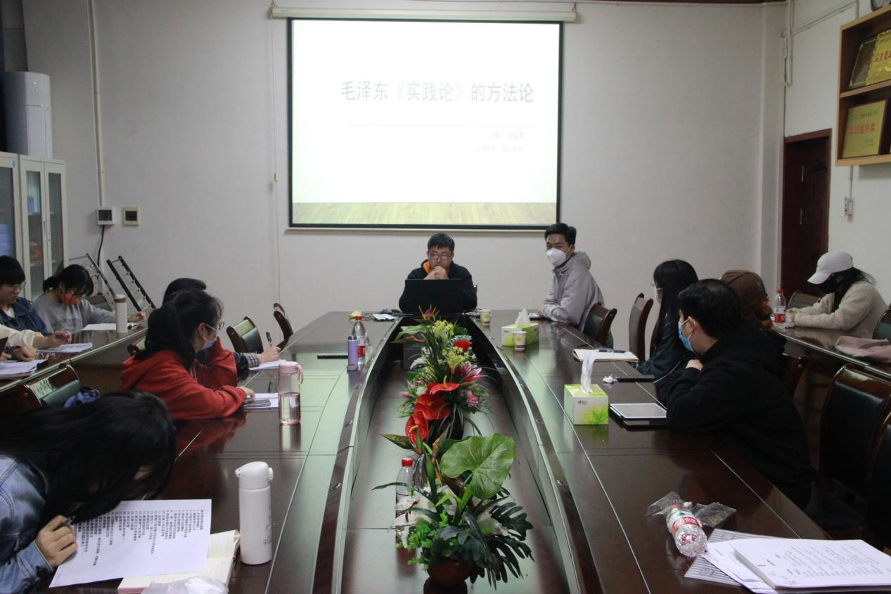 薛亚萍以“毛泽东《实践论》的方法论”为题,从文本解读以及方法论两个方面与大家进行了分享。通过对文本的深入研究,他总结出了以下结论:一是要理论联系实际,从实际出发;二是要善于调查,没有调查就没有发言权;三是要整理资料,学会归纳总结;四是要不断反复思考,不断改正。