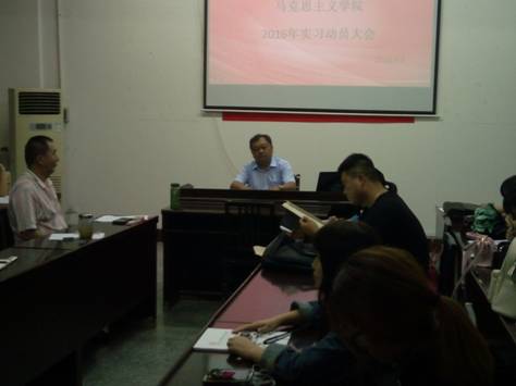 本网讯(通讯员朱夕夜)9月9日晚,我院在学院会议室召开了思想政治教育专业(师范)2013级教育实习动员大会。院长廖胜刚、院党总支副书记邓万云、副院长肖映胜、实习带队老师刘继富、院长助理孙忠良、王飞霞等院领导老师出席大会。院长廖胜刚主持会议。