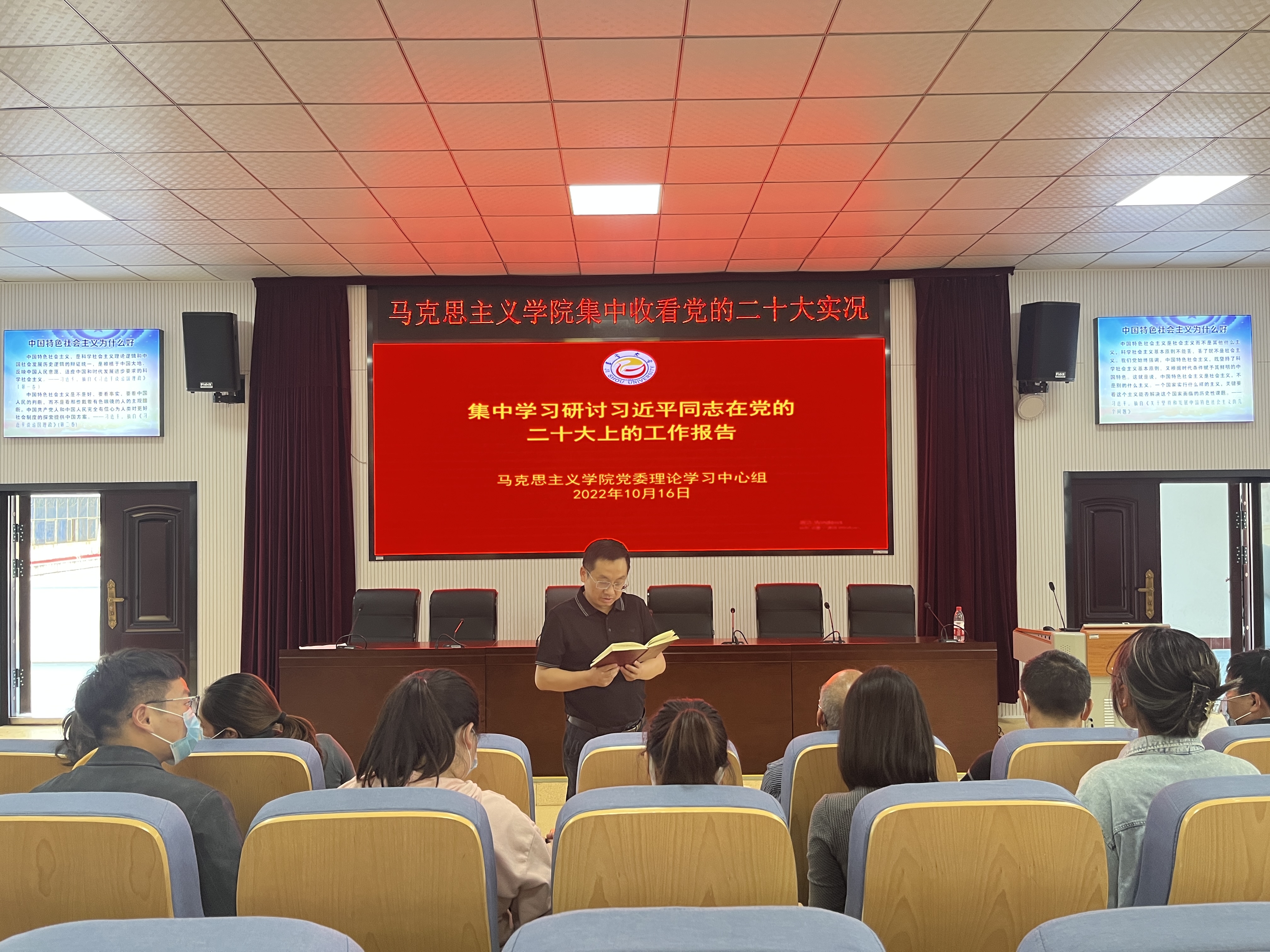 院长肖映胜对于马院师生如何开展党的二十大的学习、如何学习贯彻习近平同志所做的党的二十大工作报告,提出要做到学习、研究与宣讲相结合,做出马院特色。院党委书记柴绪亮要求学院各党支部、学生团支部开展形式多样的学习活动,将党的二十大工作报告融入教育教学,立即掀起学习宣传党的二十大精神的高潮。