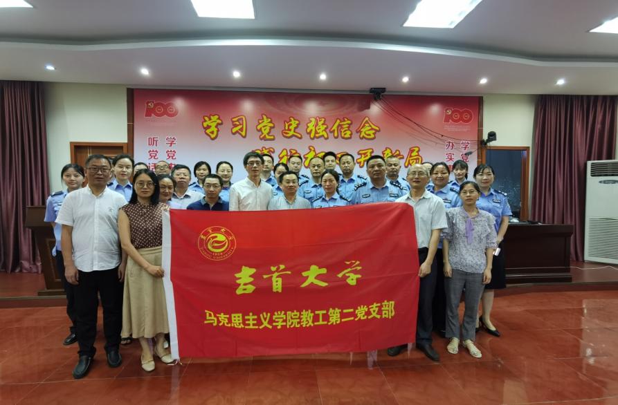 2021年6月29日下午,365英国上市公司在线教工第二党支部与湘西州强制隔离戒毒所(以下简称强戒所)联合开展庆祝中国共产党成立100周年主题党日活动。交流活动在州强戒所五楼会议室举行,州强戒所领导以及行政党支部、管教党支部、老干党支部(在职)民警职工参加活动,学院党委书记柴绪亮、院长肖映胜、副院长曾文、学院党建组织员朱廷岚以及教工二支部党员老师参加活动。活动由强戒所干警朱立明主持。