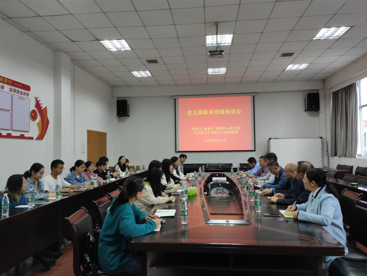 学院党委大力开展百个支部联系百个班级活动。机关三文化场馆、校友办、基建办联合党支部近年来联系了学院2017级思政班,为同学们做了大量事情。在毕业生即将离校之际,该党支部张华主任等深入学生寝室了解情况,支部又组织毕业生代表召开座谈会,勉励同学们“以人名校、以业报国”,更好地走向社会。