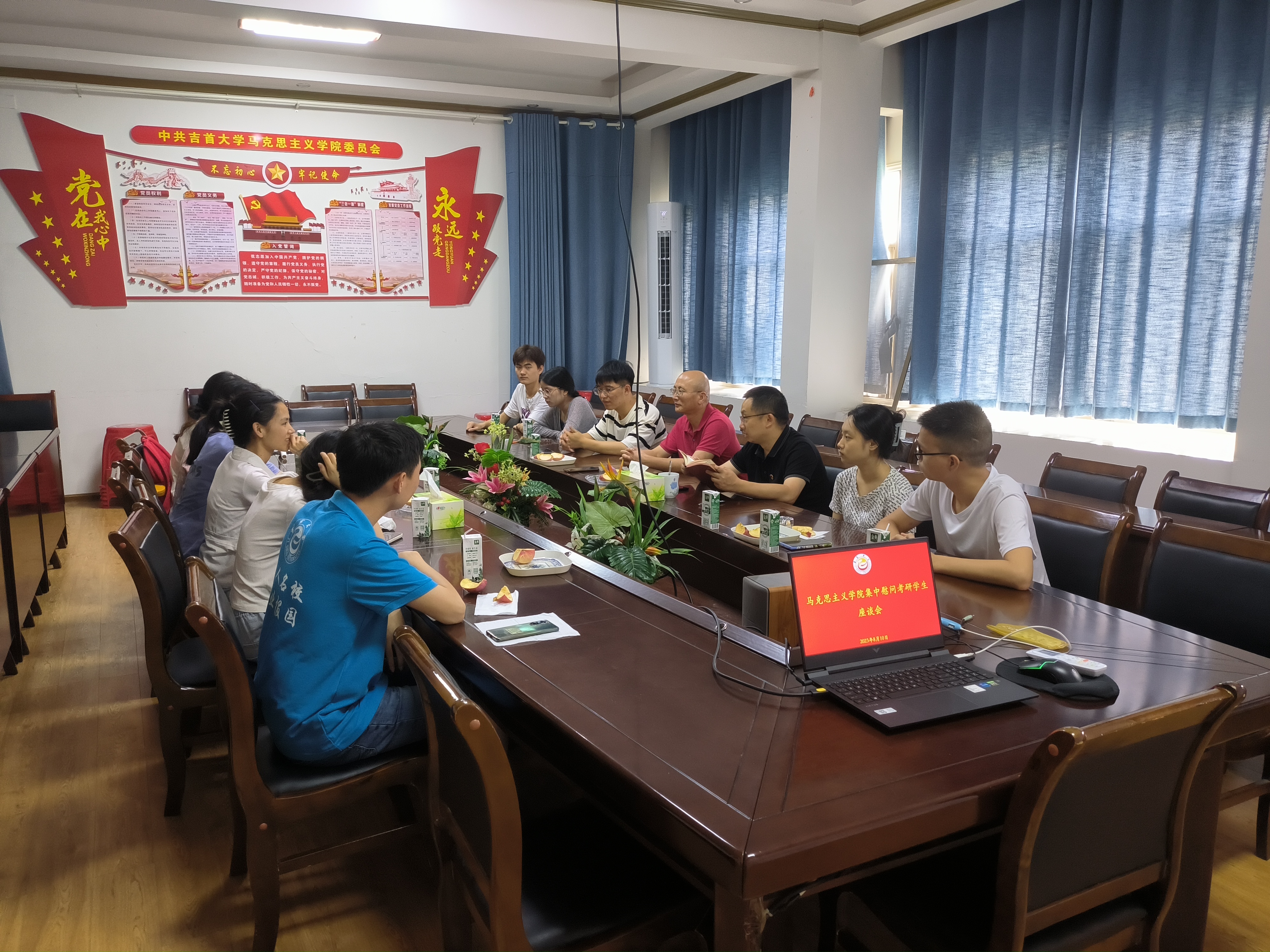 8月10日上午,学院党委书记柴绪亮、副院长曾文在院会议室召开座谈会,集中慰问在暑期留校考研的学生。学生们畅谈了暑期考研的体会,向学院领导汇报了存在的困难,提出了建议。柴绪亮、曾文就同学们关心的学习生活问题一一给予了回复,殷切祝福同学们考研成功上岸。