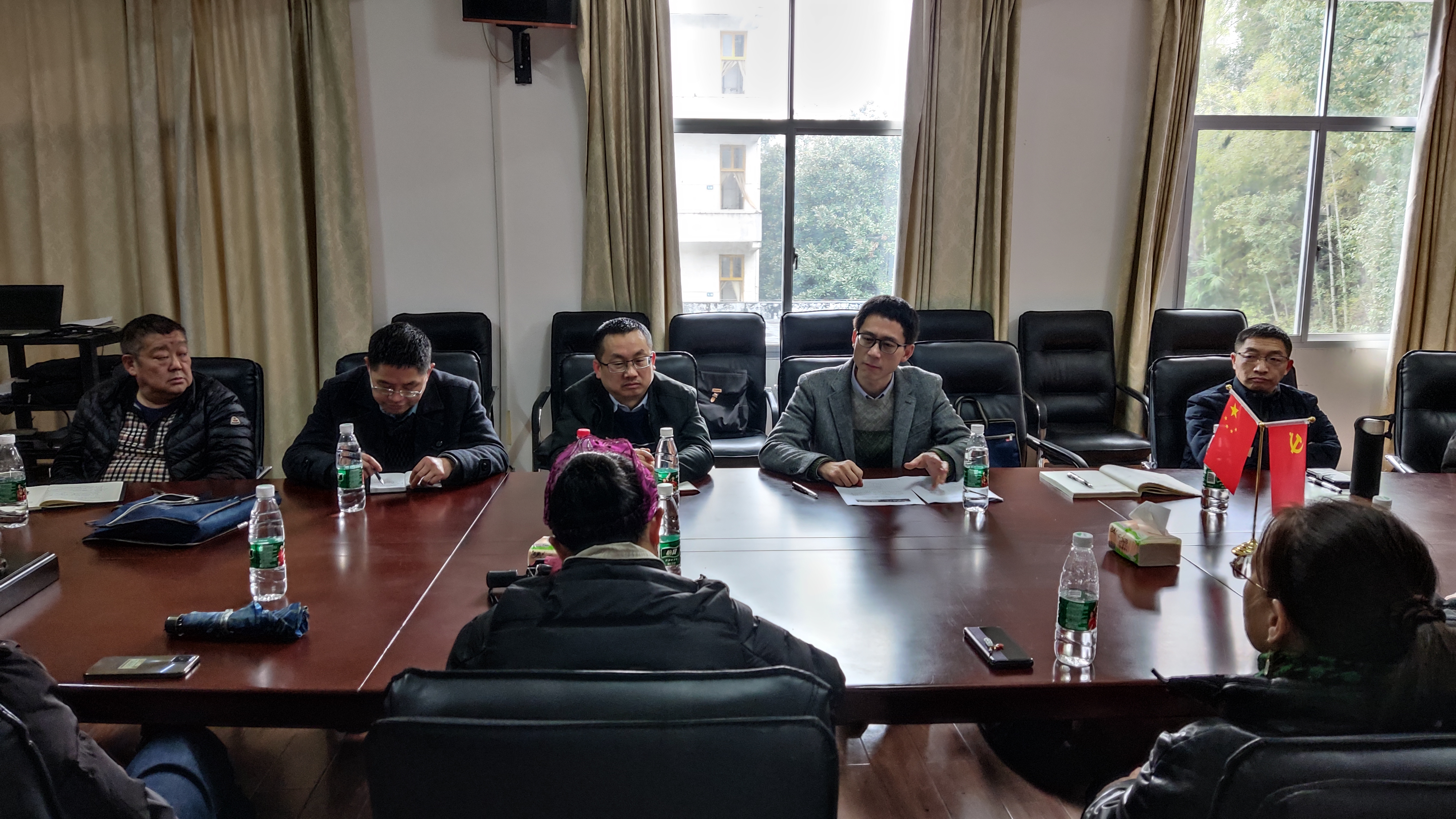 学院党政领导成员的时间安排非常紧凑,中午时分又来到张家界校区思政课综合教研室,与该教研室的12名老师座谈,专门通报学院去年取得的成绩及今年的工作设想,并就老师们关心的年终分配改革、思政课专题式教学等进行了交流。随即,大家马不停蹄的坐高铁回学校,奔赴下一个工作地点。