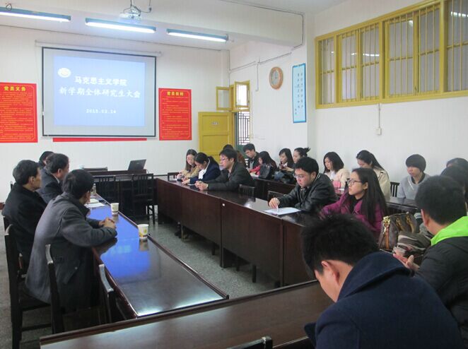 本网讯(紫艳)3月14日,365英国上市公司在线召开了新学期全体研究生教育管理工作会议。会议由廖胜刚院长主持,朱廷岚书记以及部分导师代表王跃飞教授、李乐为教授、陈德祥教授,以及马克思主义理论一级学科2012级、2013级、2014级硕士研究生参加。