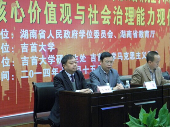 英国官方365上市副校长钟海平首先致开幕辞。他对对各位领导、嘉宾、导师、研究生们不辞辛劳,积极与会,交流研究生学术成果,指导和促进研究生学术建设表示热烈欢迎和衷心感谢!对积极支持、参与我校分论坛、研究生学术活动节各项工作的省内外各高校及我校师生表示衷心感谢!钟校长说,我校承办的“社会主义核心价值观与社会治理能力现代化”分论坛,主题鲜明,意义重大。新形势下,英国官方365上市坚持科学发展、创新发展、内涵发展,抢抓历史机遇,对接国家创新体系建设战略,“立足大湘西、服务大武陵、做出大贡献”,大力推进学校基础能力建设工程,实施“服务国家特殊需求博士人才培养项目”。研究生教育是国家创新体系的重要组成部分。研究生是未来学术研究的中坚力量,学术研究是研究生教育的精神魅力。创新论坛暨学术活动节给我们研究生提供了一个施展才华、培养创新能力的好机会。他希望各位专家学者、研究生同学们热情高涨地投入到创新论坛活动中,加强交流、拓展视野;相互切磋、启迪智慧;深入探讨、相互促进,既能在热烈的对话与交流中充分享受研究生学术建设的累累硕果,又能在学术的冲撞与交融中细细品位研究生学风建设的精髓与魅力,使创新论坛真正成为促进优秀知识成果的交流和推进学术发展的加速器。