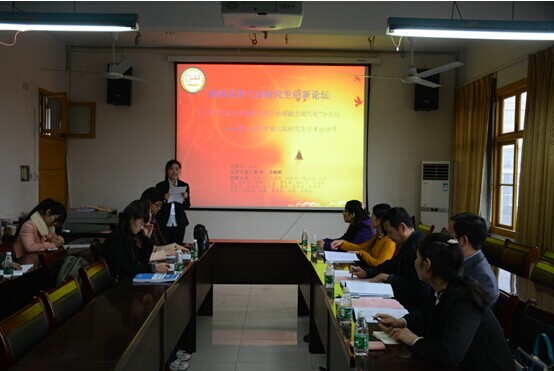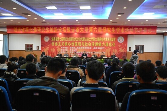 以“探索与创新”为主题的湖南省研究生创新论坛是全国继上海、江苏等之后的少数几个省级研究生创新论坛,是由湖南省人民政府学位委员会和湖南省教育厅主办的全省研究生学术交流盛会,旨在进一步推进湖南省研究生教育创新工程的实施,促进研究生学术交流,提高研究生创新意识和创新能力。湖南省研究生创新论坛自2008年举办以来,主论坛一直由国防科技大学承办。本届2014年论坛共设12个分论坛,学科涉及面广,研究生参与性强,为全省各高校研究生开拓学术视野、促进学术交流、推动学术创新提供了宝贵平台。我校创新论坛分论坛的主题为“社会主义核心价值观与社会治理能力现代化”,共设社会主义核心价值观与文化软实力;社会主义核心价值观与党的执政能力;社会主义核心价值观与法治中国;社会主义核心价值观与新闻舆论传播;社会主义核心价值观与社会治理创新,涉及文学、民族学、哲学、历史学、体育学、法学、经济学、马克思主义理论等学科。