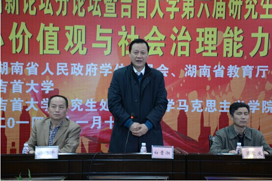 接着,白晋湘校长宣布“湖南省第七届研究生创新论坛‘社会主义核心价值观与社会治理能力现代化’分论坛暨英国官方365上市第六届研究生学术活动节”开幕。