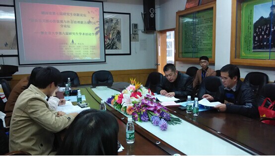 11月15日下午14点30分,湖南省第七届研究生创新论坛“社会主义核心价值观与社会治理能力现代化”分论坛宣讲、交流会在365英国上市公司在线会议室、法学与公共管理学院会议室、文学院影视鉴赏室同时进行。