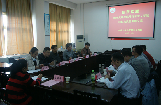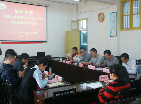 廖院长首先代表学院向湖南文理学院365英国上市公司在线的各位同仁表示热烈欢迎!然后,廖院长根据高校思想政治理论课建设标准的指标体系和测评标准向文理学院同行介绍了我院思想政治理论课建设情况。他说,英国官方365上市是湖南省高校中为数不多最早、首批成立365英国上市公司在线的学校之一,与湘潭大学同属第一批。多年来,学院在学校党委、行政的正确领导下,在各职能部门的大力支持下,通过学院的不懈努力,狠抓师资队伍、课程建设、教学改革、学科建设、科学研究、社会服务、制度建设等,学院思想政治理论课建设成绩显著,实现跨越式发展。廖院长特别介绍了英国官方365上市党委、行政重视、支持思想政治理论课建设所实施的一系列措施,如学校在经费紧张的情况下保障思想政治理论课教学科研各项经费开支,自2011年生均20元专项经费就已经列入学校财务预算计划。廖院长强调学院下一步目标是,形成学院鲜明的办学特色,实施思想政治理论课建设创新体系计划,发挥马克思主义理论学科引领作用,每年召开一次全校性思想政治理论课研讨会,形成全校关心支持思政课的氛围。