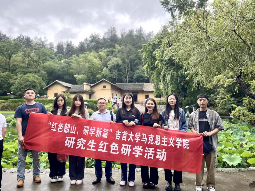 (图为学院研学成员在毛泽东故居前合影留念)
