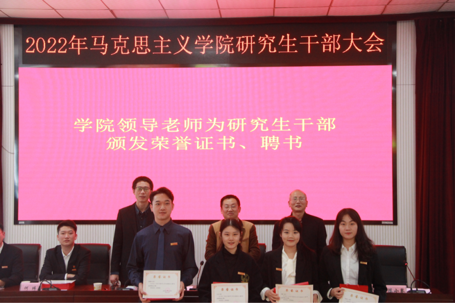 学院领导为研究生干部颁发荣誉证书、聘书