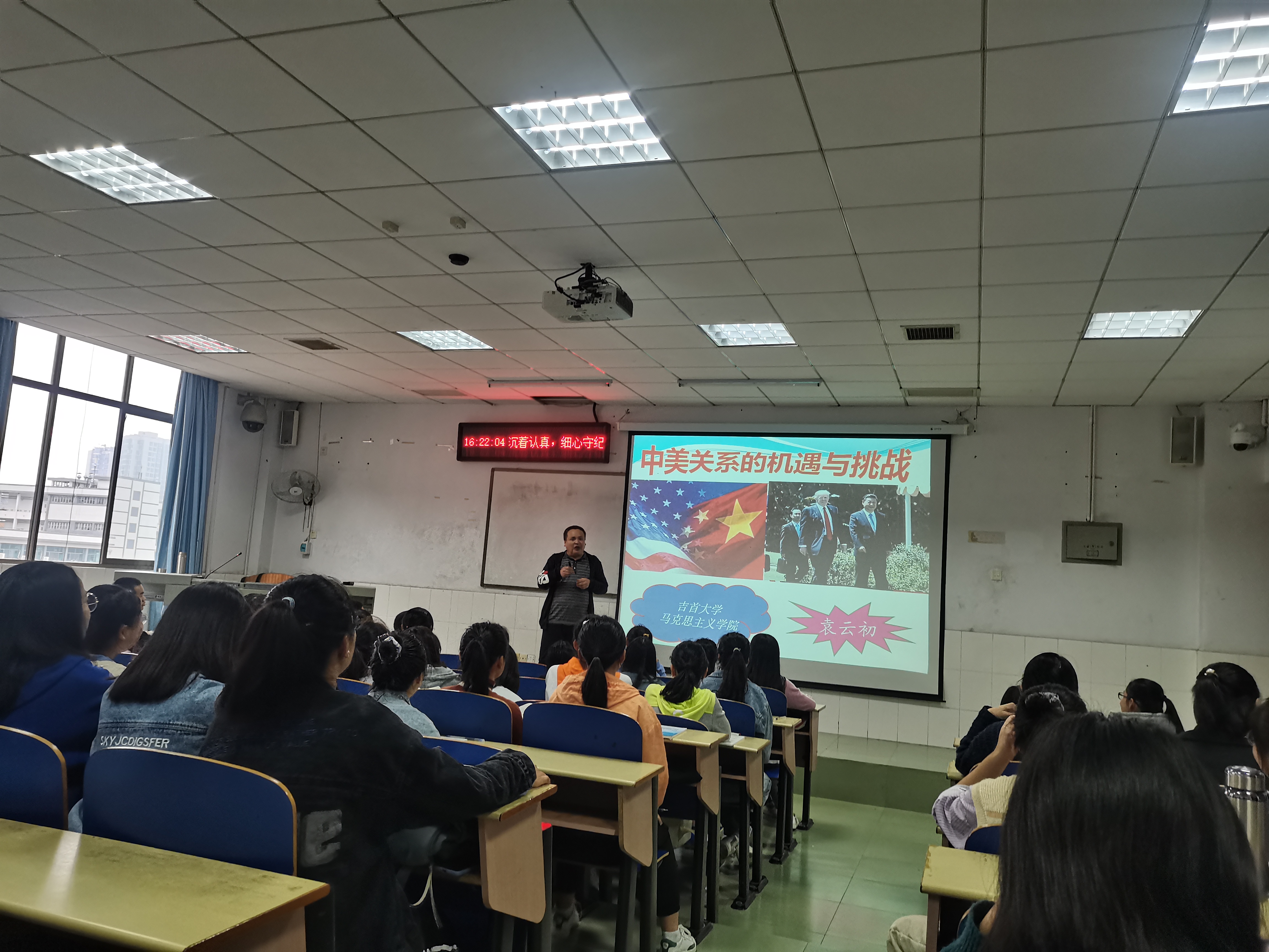 近期,我院形势与政策教研室举行了集体备课、听课与评课等系列教研活动。9月24日,形势与政策教研室在学院办公室进行集体备课。会议观看了天津市形势与政策课程集体备课会视频直播,学习骆郁廷教授的示范课程,传达2020 年秋季全省高校“形势与政策”课骨干教师培训班的相关会议精神,对全校形势与政策课程考核方式进行了讨论。10月21日,学院承担本学期“形势与政策”课授课任务的部分教师前往大田湾校区听新进教师张维红博士的课《全面建成小康社会》并进行了集体点评。10月28日下午,“形势与政策”课教师又集体观摩了袁云初老师的课《中美关系的机遇与挑战》。