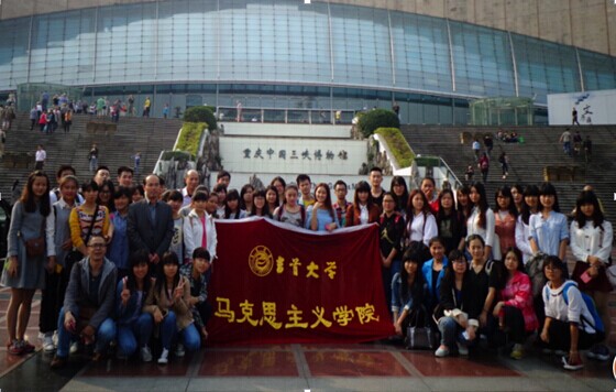 本网讯(飞霞) 实践教学是高校思想政治理论课的重要环节。开展实践教学有利于拓展学生视野,延伸课程教学内容,增强理论与生活的对接度,提高思想政治理论课的教学实效。根据《实施方案》(教社政[2005]9 号)、湖南省《高等学校思想政治理论课建设标准》、《中共英国官方365上市委员会关于进一步提高思想政治理论课教学实效的工作方案》(吉大党发[2010]12号)等文件精神,结合365英国上市公司在线教学工作要求和教研室实践教学计划,10月25至26日我院“原理”教研室全体老师组织文科专业部分学生代表前往重庆开展了实践教学活动。