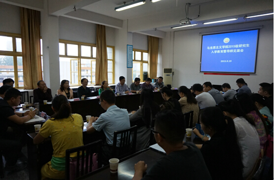 王跃飞教授代表全体硕士生导师在见面会上作了重点发言,对2015级新生的到来表示欢迎和祝贺。他希望全体新生尽快适应新的学习和研究环境,正确定好位,明确好自己所要努力的目标,并转变学习方式,增强主观能动性,充分利用校内外资源进行研究性学习。出席会议的硕士生导师孙忠良、郑流云、王跃飞、李景军、冉光仙、彭兴富均表达了对新生的良好愿景和期望,希望新生:培养高尚的道德人格、哲学的批判精神、务实的创新思维;珍惜时间,善于学习知识,善于阅读经典,夯实专业知识,以便学以致用、抓住机遇、加快发展。