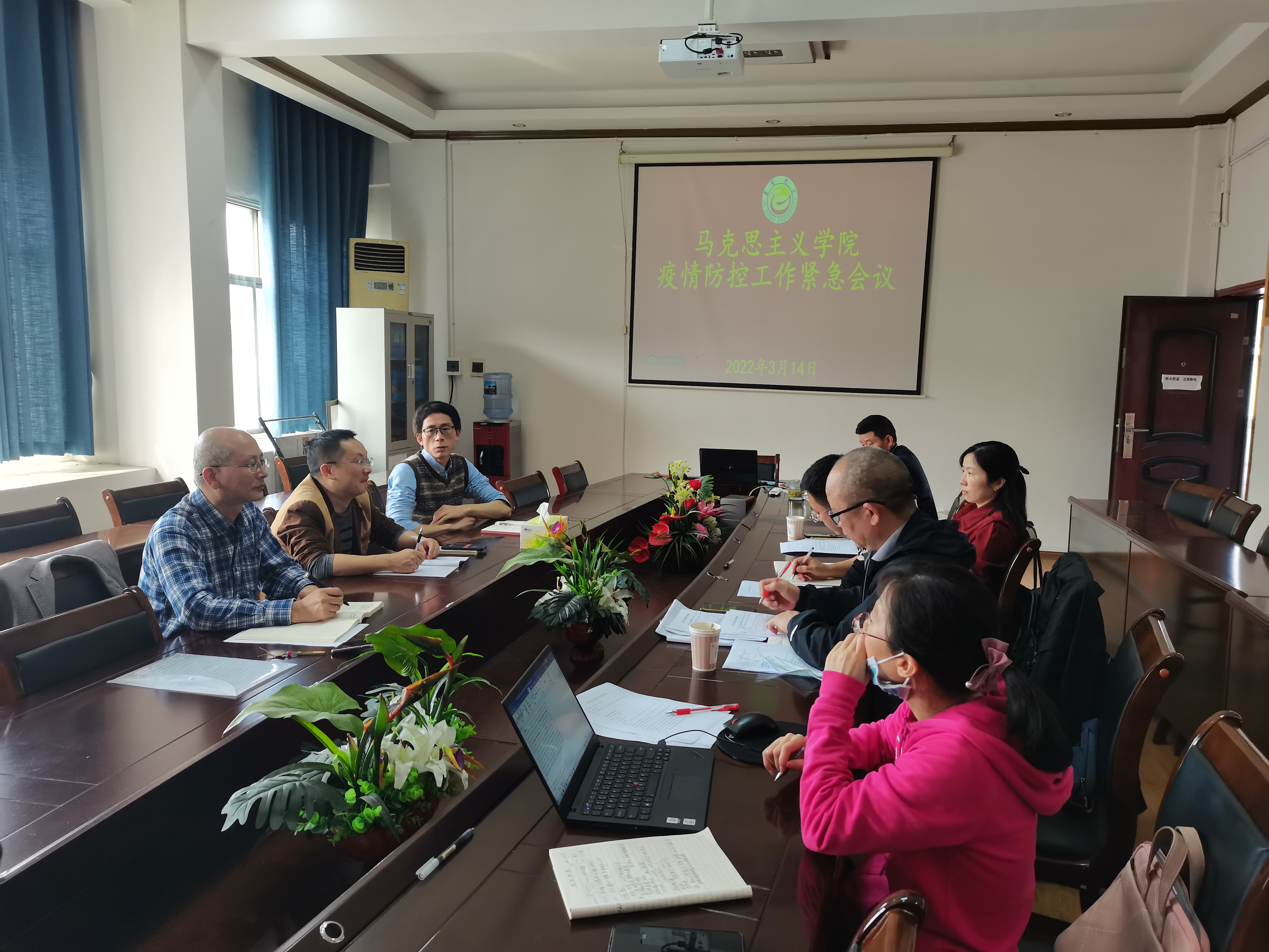 3月14日上午,学院召开疫情防控工作紧急会议,院党委书记柴绪亮、院长肖映胜、副院长曾文,学院行政工作人员,各班主任,教研室主任参加会议。