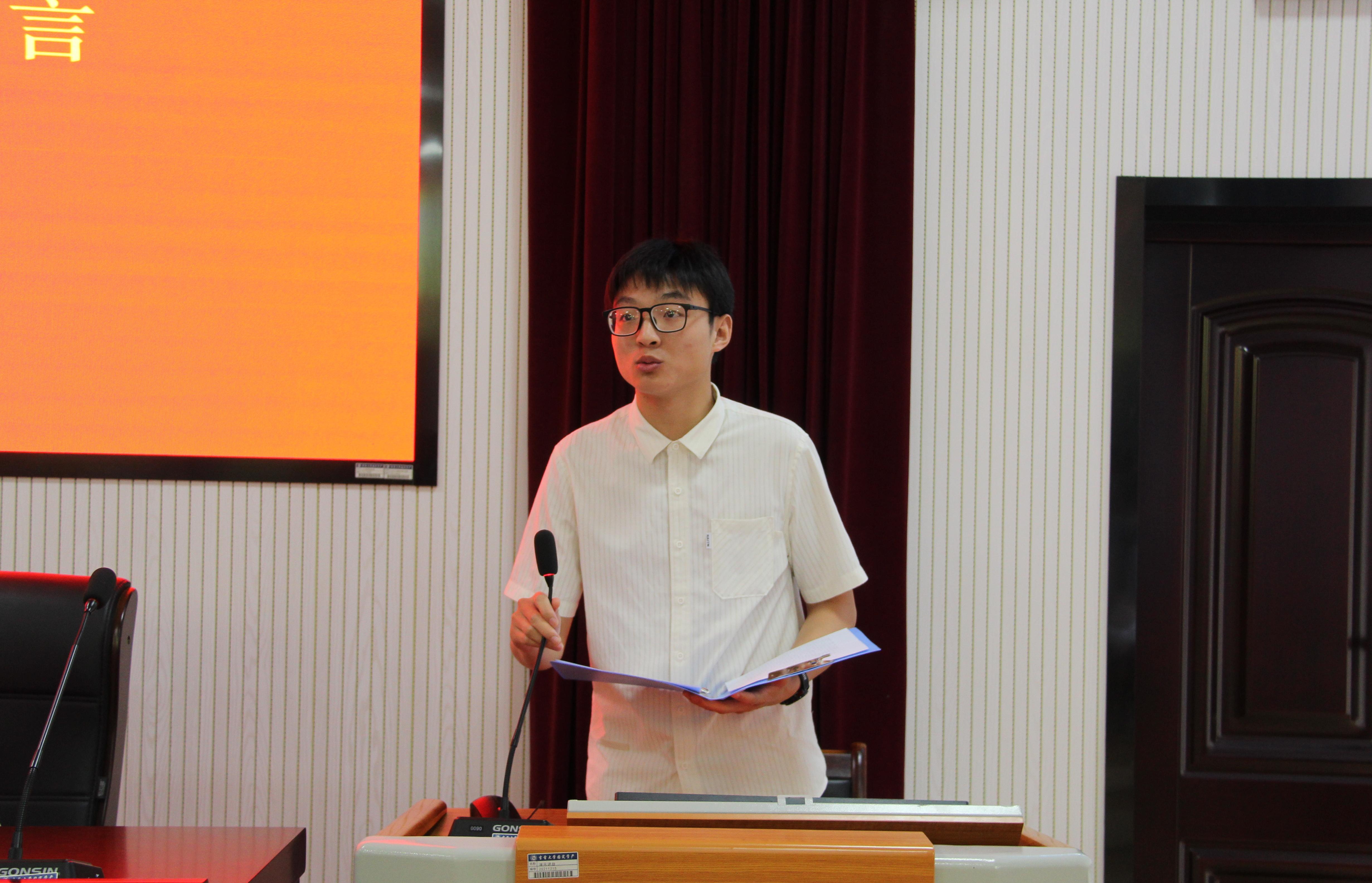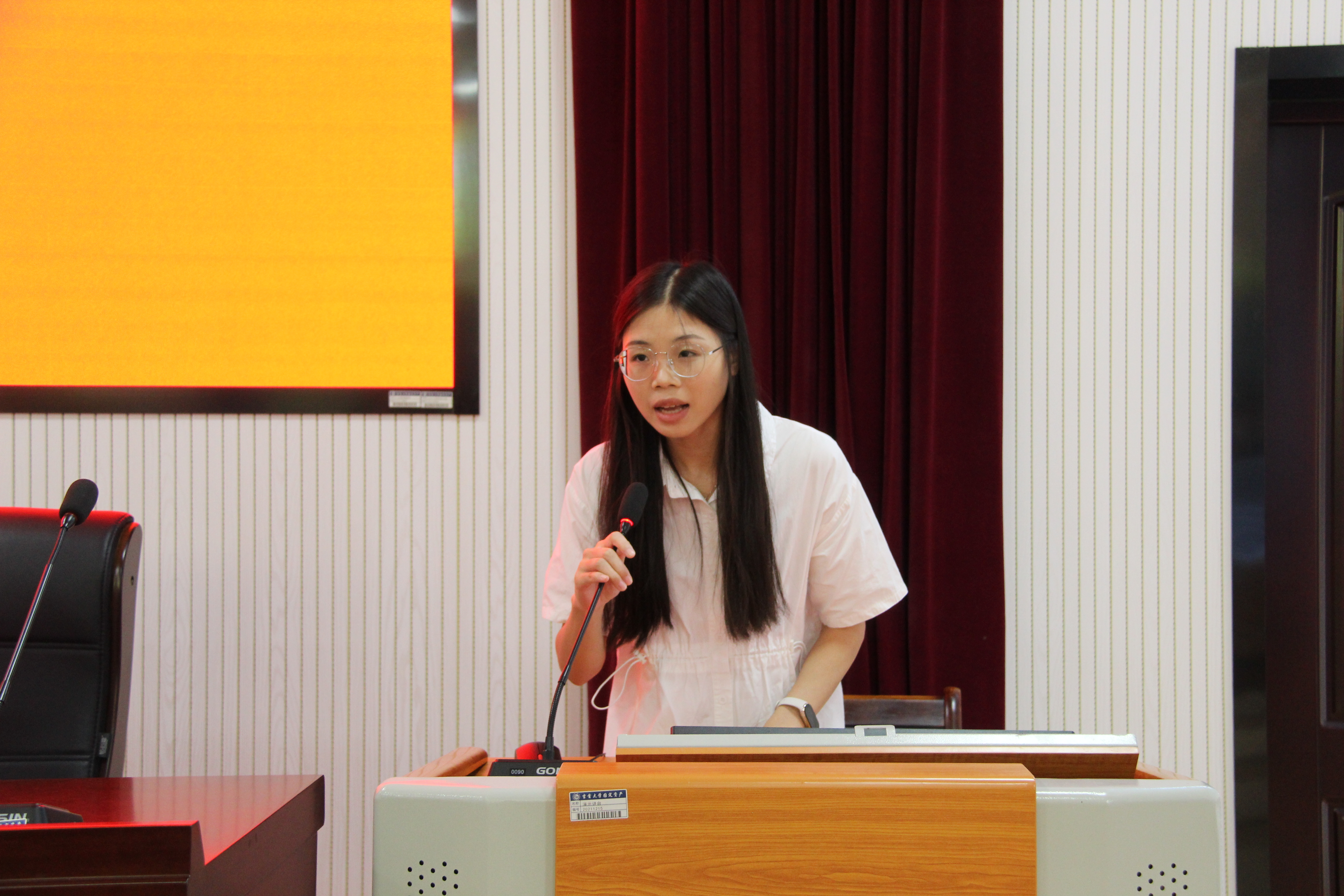 接下来,2019级思政专业肖贞凤同学分享了教育实习和考研经验两方面的经验,鼓励大家在教育实习、考研、就业征途中循序渐进,调心态面对挑战。2021级实习生代表胡军涛同学代表全体同学承诺:听从学院安排,履行实习职责,努力完成教育实习任务。